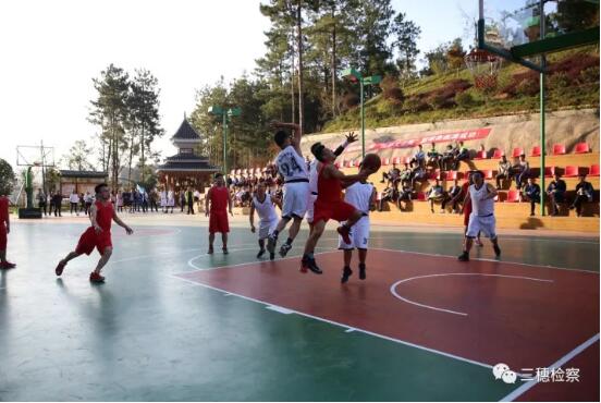 篮球比赛项目:三穗对阵天柱,州院、镇远取得全胜, 获得小组第一名,进入8强;三穗对阵剑河,挺进4强